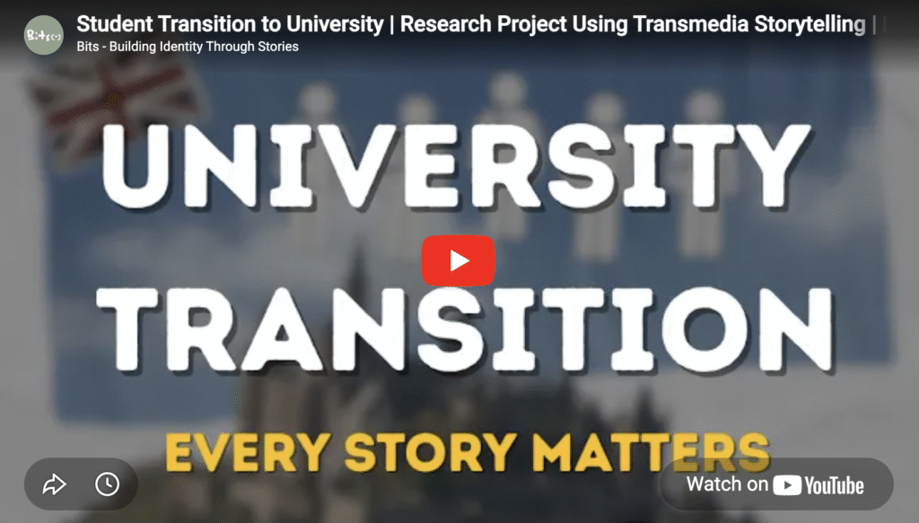 This creative workshop is part of the funded doctoral research project Building Identity Through Stories (BITS). The project explores how transmedia storytelling (TS) can support students with learning differences as they transition into university and begin shaping their identity and sense of belonging.